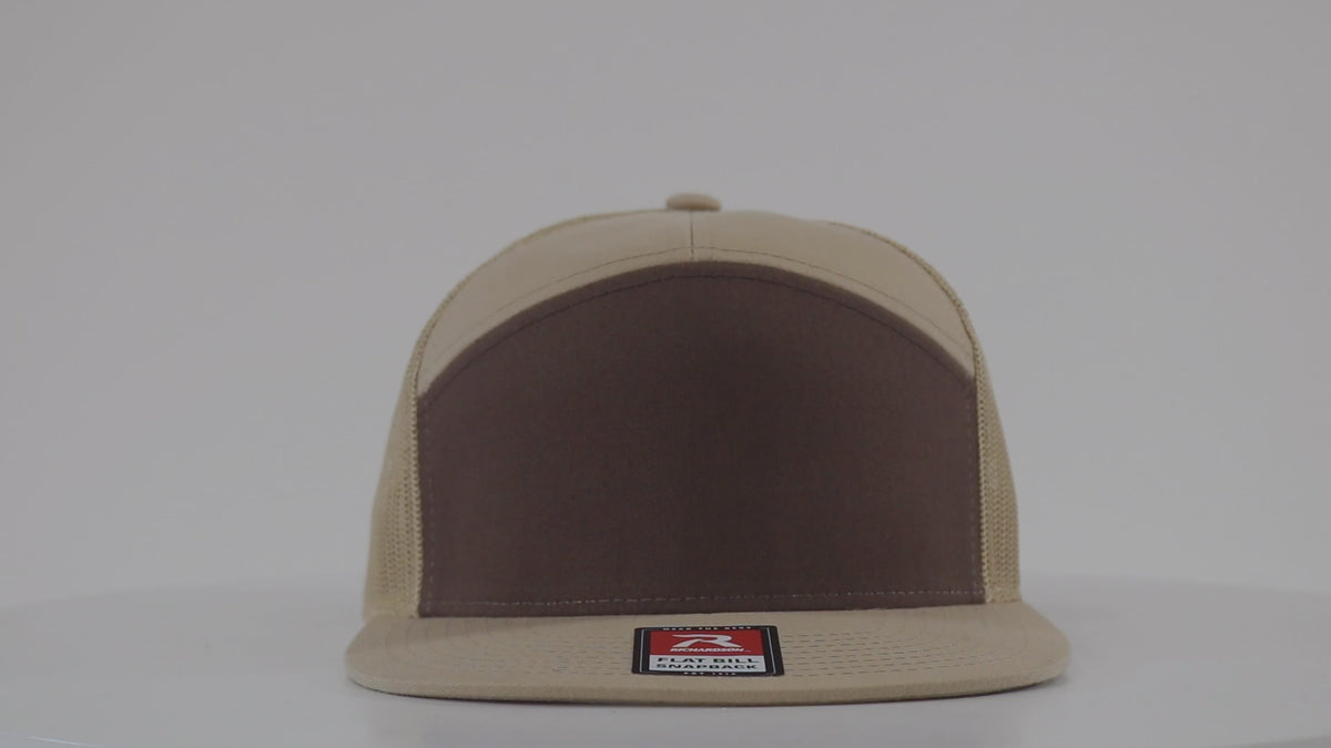 A new take on a classic style. This unique 7 panel trucker cap is designed to create a seamless front panel, perfect for any style of decoration. This crown design is an on-trend look, popular with many of the fashion and action sports brands.